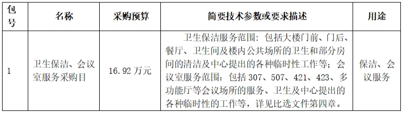 中国健康教育中心就 “卫生保洁、会议室服务采购项目”进行比选采购,现邀请合格供应商参加比选响应。