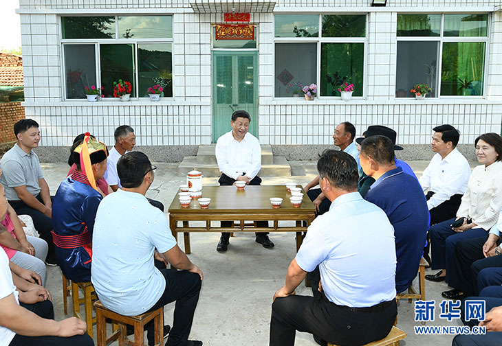 7月15日至16日,中共中央总书记、国家主席、中央军委主席习近平在内蒙古考察并指导开展“不忘初心、牢记使命”主题教育。这是15日下午,习近平在赤峰市喀喇沁旗河南街道马鞍山村村民张国利家,同基层干部群众代表座谈交流。 新华社记者 谢环驰 摄